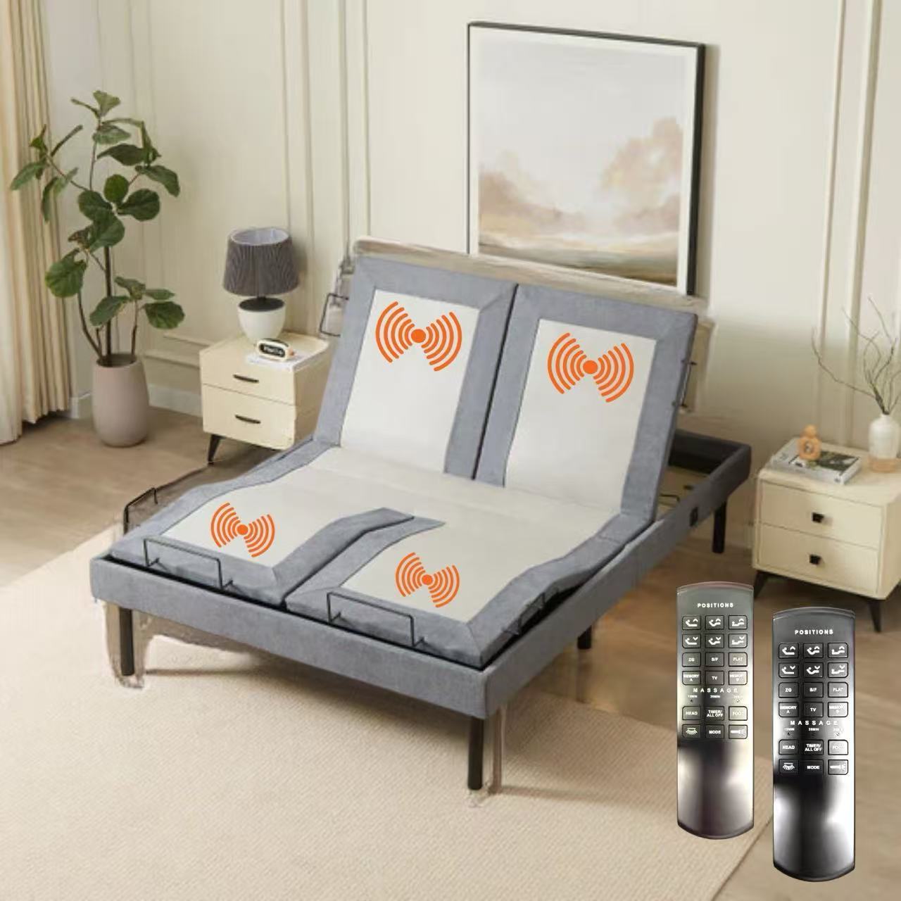 Dual remotes can independently control the left and right sides of the adjustable base. The foot articulates in one section for the entire bed.