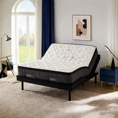Industry-leading Okin Motors elevate the head and foot for your utmost comfort.